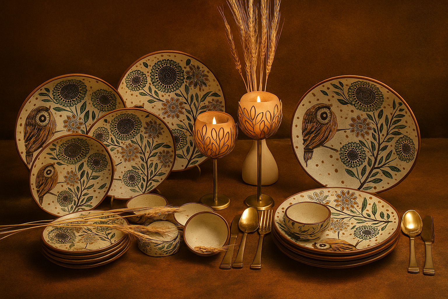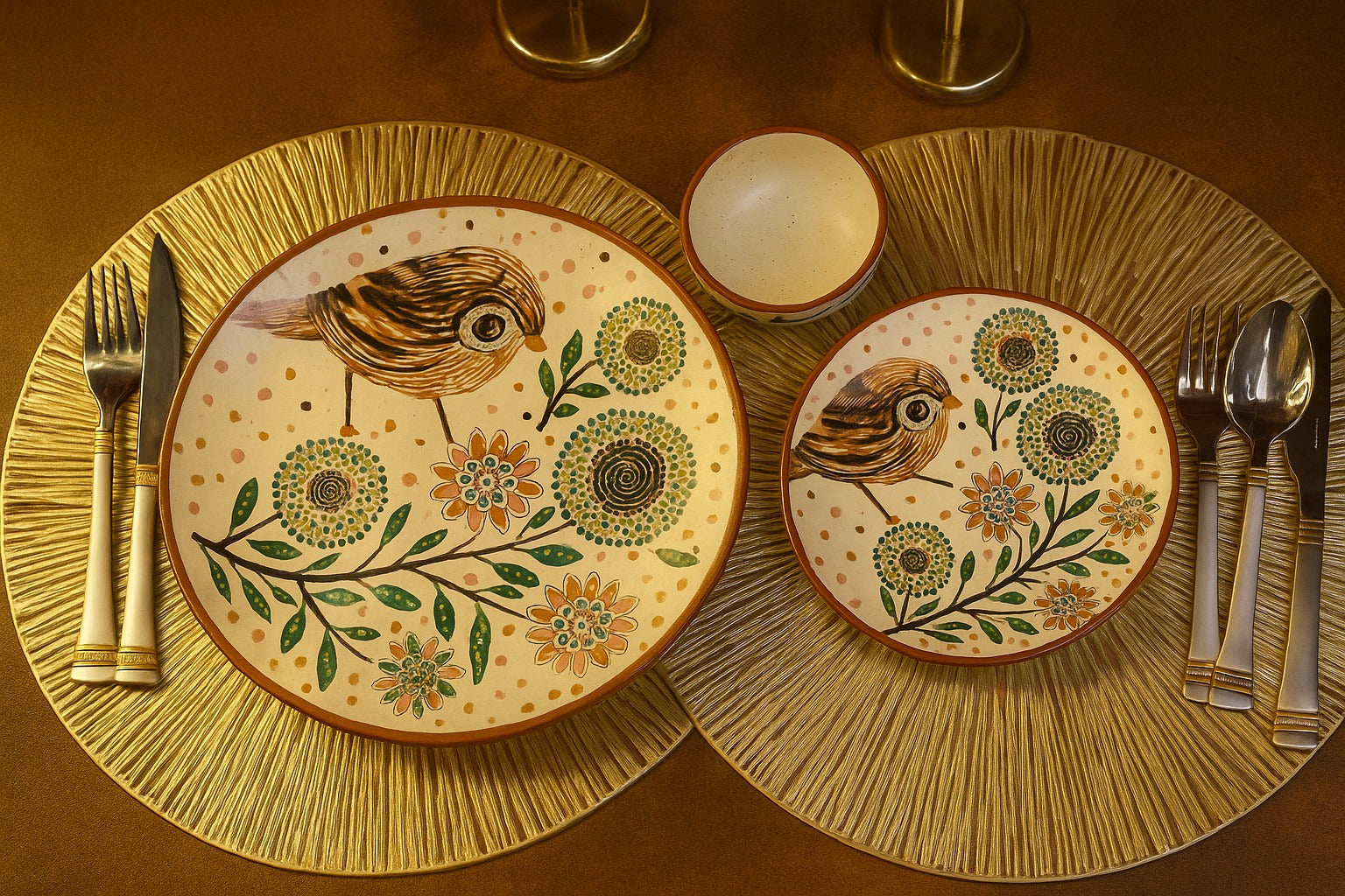 Owlet Bloom Collection Dinner Set: Handcrafted Ceramic Elegance